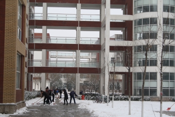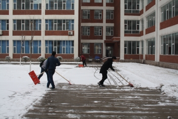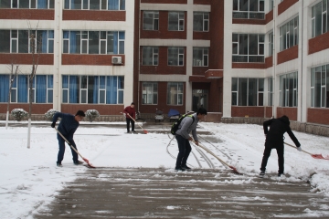 2月21日夜,我市突降大雪,给师生员工出行造成不便。化学化工学院立即启动特殊天气应急预案,安排师生按照责任区域展开清雪工作。参与清雪的教职工及学生不怕苦、不怕累、顶风冒雪、共同协作,完成了责任区内的清雪工作。22日清晨,欧冠官网师生提前取来清雪工具,有序地来到各自的劳动区域,开始清雪工作。面对厚厚的冰面,老师和同学们充分发扬了吃苦耐劳、顽强拼搏的精神,大家团结协作,干劲十足,分工明确,极大的提高了工作效率。在欧冠官网师生共同努力下,欧冠官网8教、9教、10教周边道路及楼间广场厚厚的积雪基本清理干净,确保了校园道路的畅通无阻,为师生安全出行提供了保障。