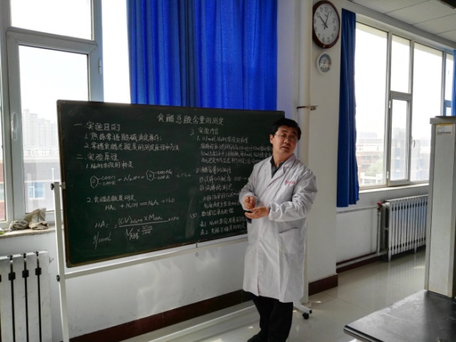 4月19日上午10点,范传刚副教授在10教506讲授优质观摩课《食醋总算含量测定》。范传刚老师从醋酸酸度的标识入手引入新课,重点讲解实验设计思路、原样的处理及数据的处理,同时,强调分析天平、移液管的正确使用。整堂课设计思路清晰、逻辑性强、重点突出,对于学生实验中易出现问题把握准确、分析到位,注重学生动手能力、数据处理等能力及规范意识的培养,取得了良好的教学效果。之后,就本次实验课的设计思路及实验教学应该注意的问题进行了交流,并围绕如何提高实验课堂教学效率及一些细节问题进行了深入探讨。