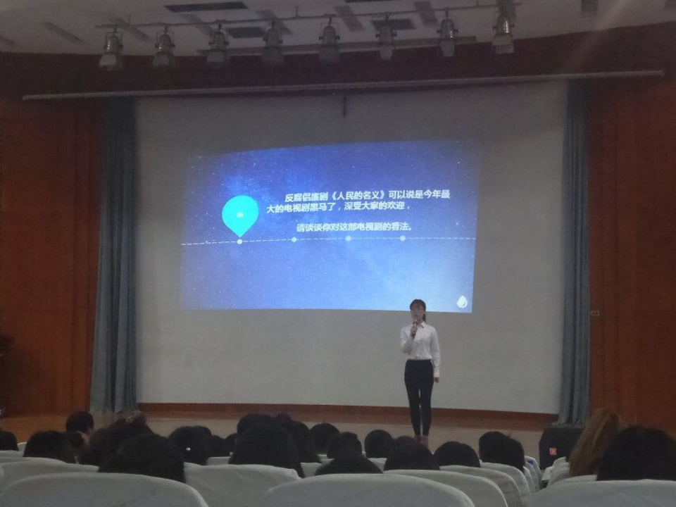经过初赛,复赛的层层选拔,来自全校的十名选手一路披荆斩棘,终于站在了今天决赛的舞台上。大赛分为即兴评述和合作空间两个环节。在第一环节中,参赛选手抽取试题并进行自由评述,欧冠官网的7号选手谷晶晶,以对《人民的名义》的看法为题,进行了即兴的点评,展现了高超的临场发挥能力,获得现场阵阵掌声。在合作空间环节中,选手们随机应变,现场更是高潮迭起。谷晶晶表现的非常出色,她与随机搭档配合默契,用精湛的演技与流利的话语完美的诠释了婚礼司仪的角色。最终,谷晶晶获得二等奖的好成绩。
