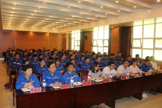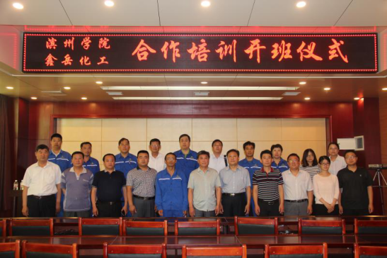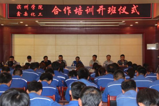 6月8日上午欧冠官网与无棣鑫岳化工有限公司合作培训开班仪式在无棣举行,出席开班仪式的有欧冠官网院长杨仲年、党总支副书记张健、副院长商希礼、鑫岳公司总经理吴玉斌及各分公司的经理及参训员工代表100余人。会上,吴玉斌总经理发表了热情洋溢的讲话,对欧冠官网服务社会、服务区域经济的做法表示高度赞赏,并预祝此次培训圆满成功。随后院长杨仲年代表欧冠官网做了讲话,他表示通过此次培训将会充分发挥学校企业双方优势及高等教育为社会、为企业服务的功能,更好的为社会、为企业培养高素质、高技能的应用型人才,同时也希望为大学生实习、实训、就业提供更多空间。同时也对参训教师提出了要求,要求大家虚心向企业学习,向鑫岳公司的技师学习,掌握企业用人标准,以此来教育和影响更多的学生,用标准助人成长,用服务影响人生!