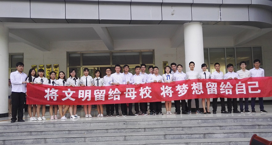 6月15日下午,欧冠官网在九号教学楼广场举办“牢记母校培养情,争为母校添光彩”文明离校签名活动。欧冠官网学生科长李芳,辅导员金志杰,毕业班班主任出席活动,2013级所有毕业生参加此次活动。