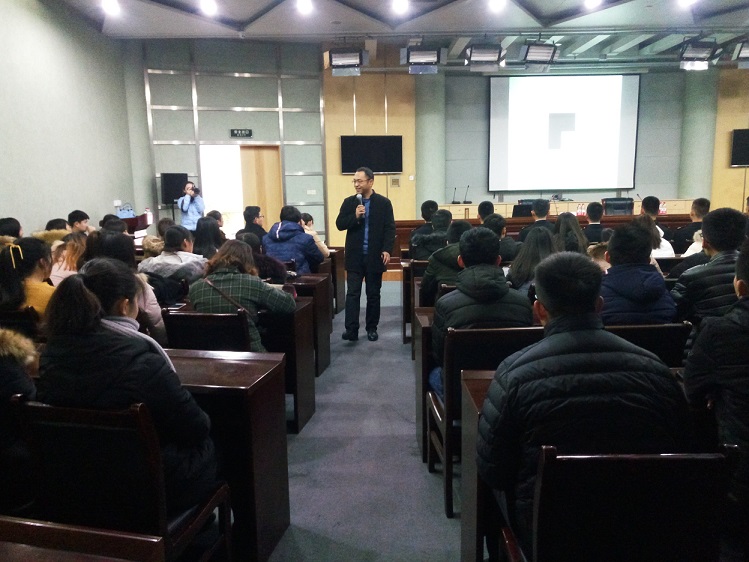 为了深入学习贯彻党的十九大精神,进一步加强和改进大学生思想政治教育工作,12月9日欧冠官网于二百人礼堂组织“创新·创业·创青春”大讲堂,欧冠官网党总支副书记张健主持,各院系学生代表参加此次活动。