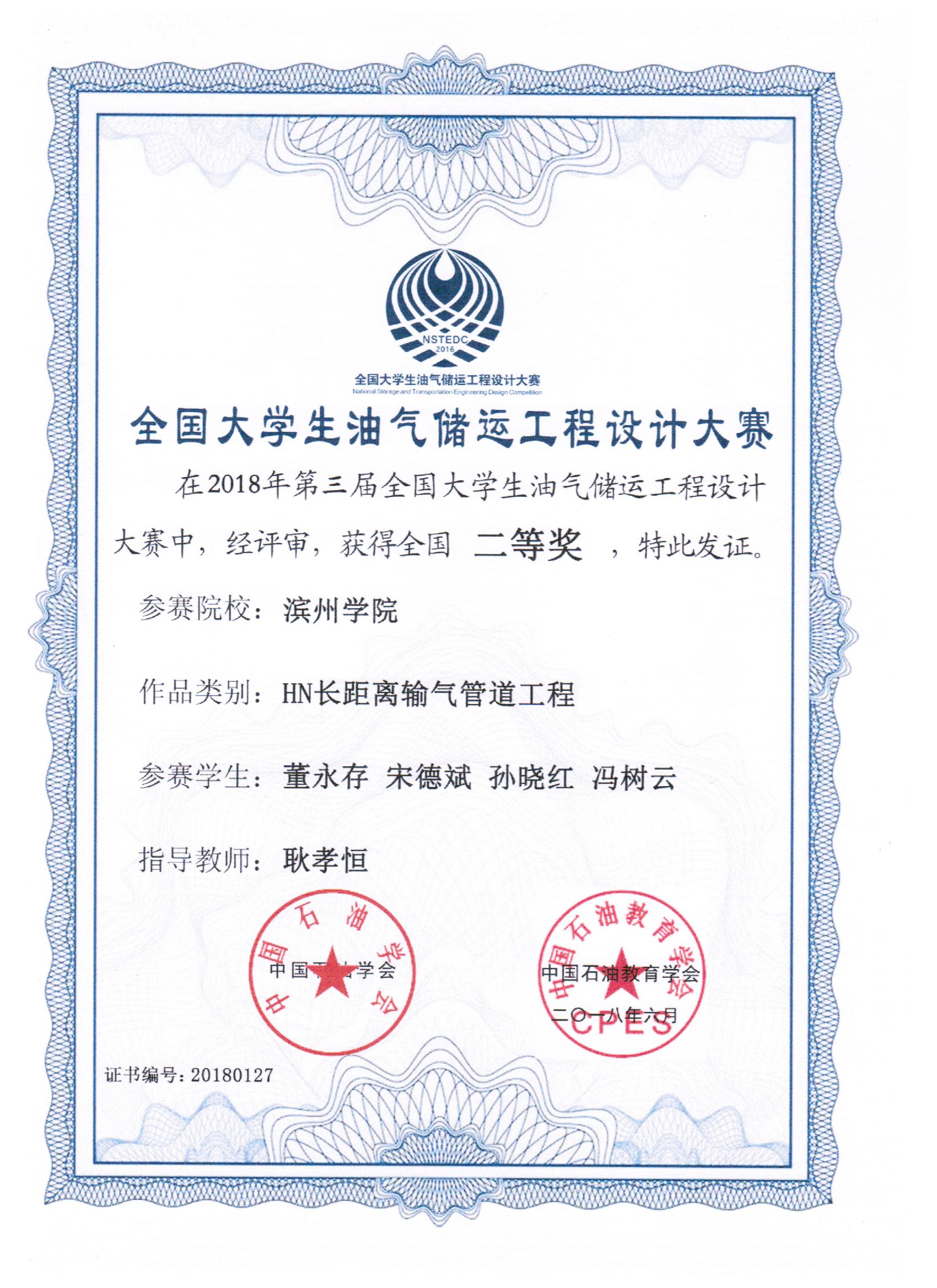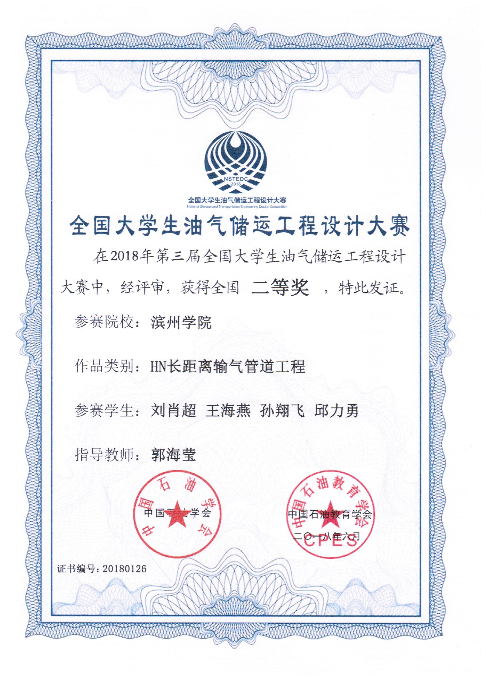 全国大学生油气储运工程设计大赛是由中国石油学会、中国石油教育学会主办,中国石油大学(华东)承办的面向全国大学生的油气储运学科专业性大赛。此次大赛共有60支队伍进入决赛,欧冠官网共有三支队伍进入决赛。决赛于6月22日-24日在中国石油大学(华东)进行,经过了抽签,答辩,提问,评审等多个环节,欧冠官网喜获“全国大学生油气储运工程设计大赛二等奖”三项的好成绩。(详见网址:/index.html