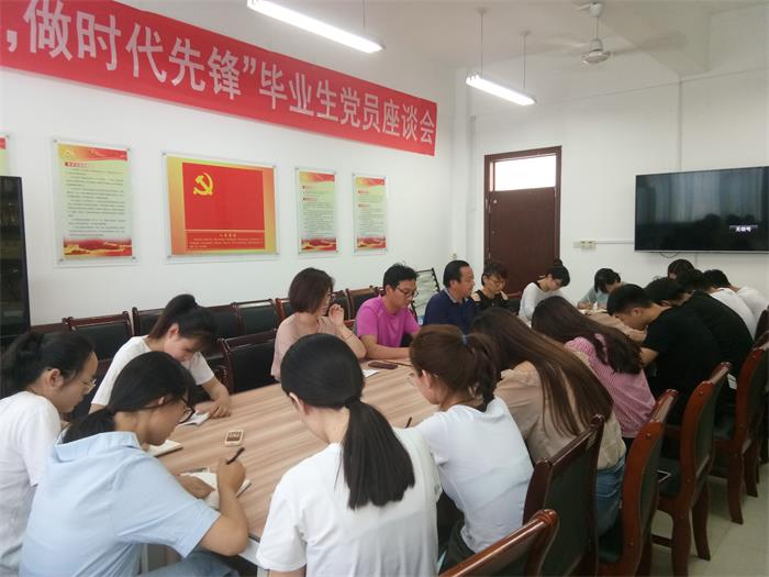 在2019届毕业生即将告别母校之际,为切实加强毕业生党员教育,在今后的工作、学习、生活中继续永葆先进、争做优秀,发挥先锋模范作用,6月4日下午15点,欧冠官网在八号教学楼316会议室开展“为党旗添彩,做时代先锋”毕业生党员座谈会。座谈会由学生党支部书记金志杰主持,党总支副书记张健,辅导员马盛楠、张丛丛出席。全体毕业生党员参加。