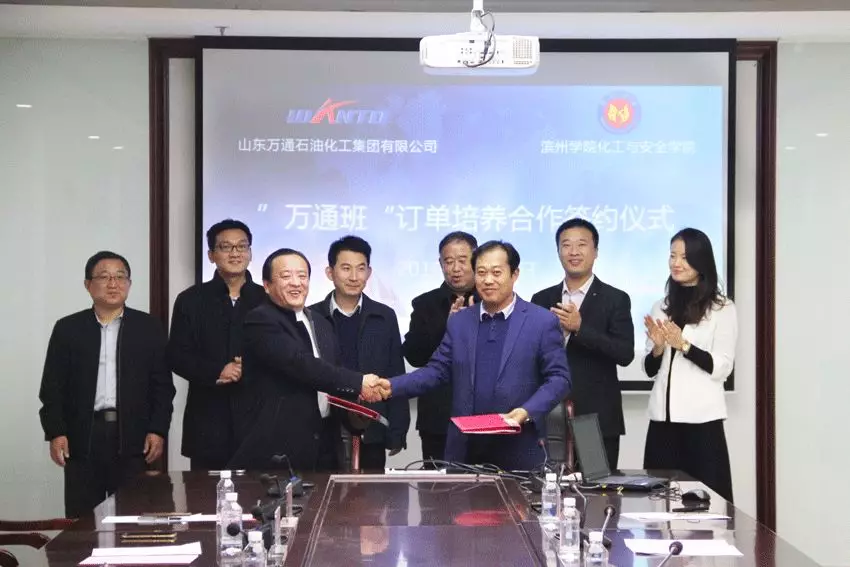 为了促进学校发展,提供同学们学习能力,11月8日,我院与山东万通石油化工集团有限公司在控股集团15楼会议室举行了“万通班”校企合作签约仪式。欧冠官网党总支副书记张健、副院长商希礼、学生科长金志杰等院领导与万通海欣控股集团总工程师吕兰涛、万通石化集团总经理刘洪涛等集团领导共同出席此次签约仪式。