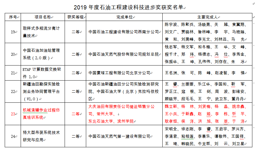 近日,2019年度石油工程建设科学技术奖评审工作圆满结束,欧冠官网耿孝恒博士与大庆油田有限责任公司储运销售分公司等共同申报的“机械清罐作业过程仿真培训系统”成果荣获中国石油工程建设协会科技进步奖二等奖,欧冠官网为第四完成单位。这是欧冠官网获得的首个此类奖项。