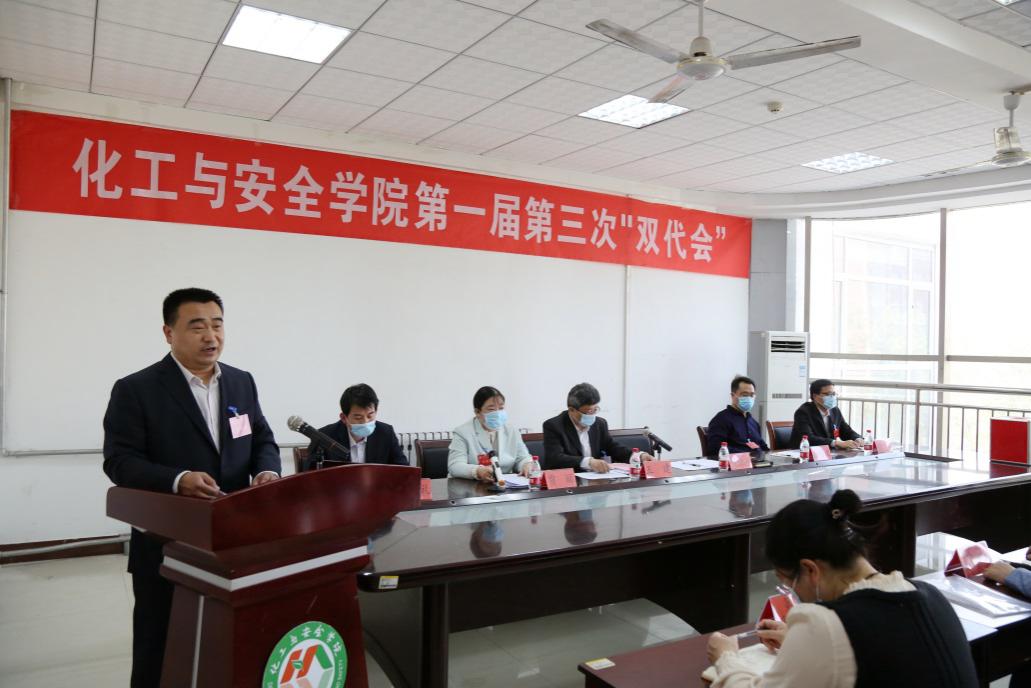 4月28日下午14:30,化工与安全学院第一届第三次教职工代表大会暨第一届第三次工会会员代表大会在9-313会议室召开,40位代表出席会议。大会在嘹亮的国歌声中拉开帷幕。开幕式由党总支书记王建同志主持。