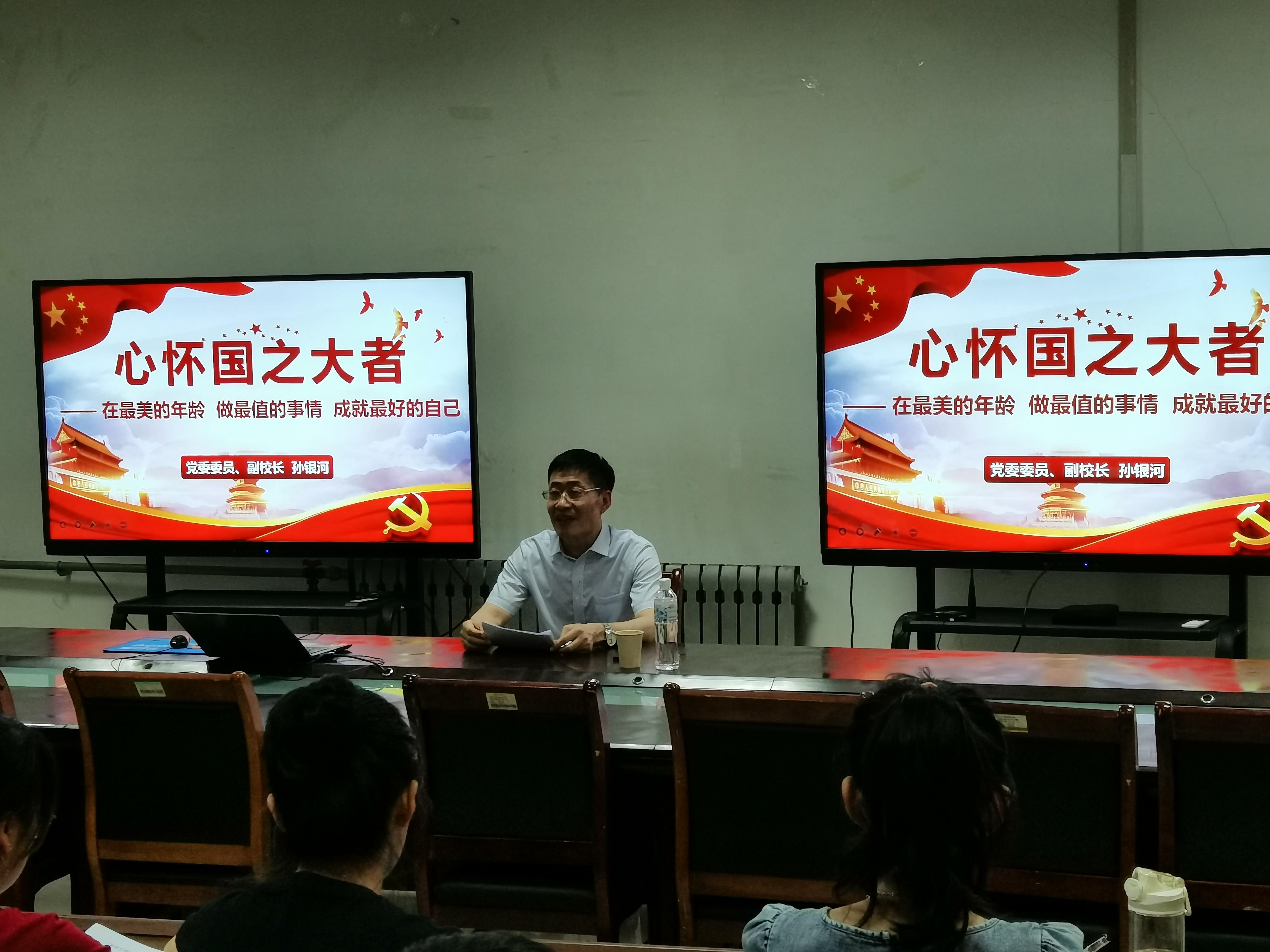 5月31日下午,党委委员、副校长孙银河同志在9号教学楼313室以《心怀国之大者——在最美的年龄 做最值的事情 成就最好的自己》为题,为化工与安全学院联系班级讲思政课。