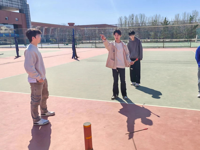 春风送暖,绿柳扶苏。活动在温暖轻松的气氛中拉开帷幕。活动负责人提前就位,在校篮球场布置好活动道具,同学们以宿舍为单位在活动场地集合并完成签到。随后活动正式开始,第一个游戏投壶调动同学们的积极性,参赛同学站在投壶线上, 参赛同学轮流进行投掷,每人投掷4次,第二个游戏同心鼓,队员将一个网球放在鼓面上队员用手拉起绑在鼓上绳子的一端通过大家的通力协作鼓有节奏地平稳地把球连续地颠起。这些小游戏培养了宿舍成员团结一心精神,本次活动在欢声笑语中圆满结束!