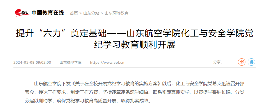 近日,欧冠官网党纪学习教育开展情况被学习强国、中国教育在线报道。