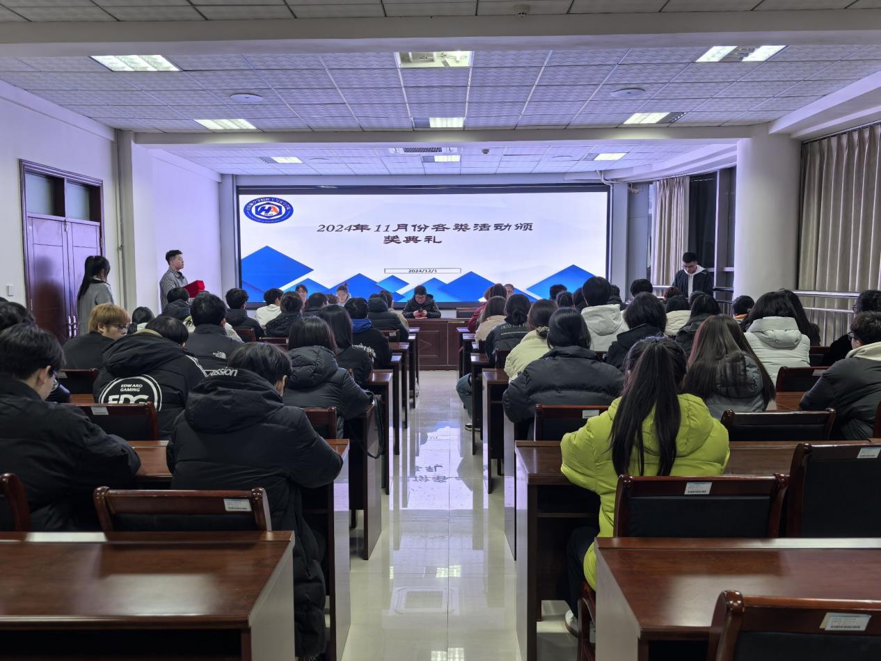 12月1日,欧冠官网在九教313教室举办11月份活动颁奖典礼。学生科科长张岩冲、辅导员杜金双、李亚萍、姚斌及全体获表彰集体和个人参与。