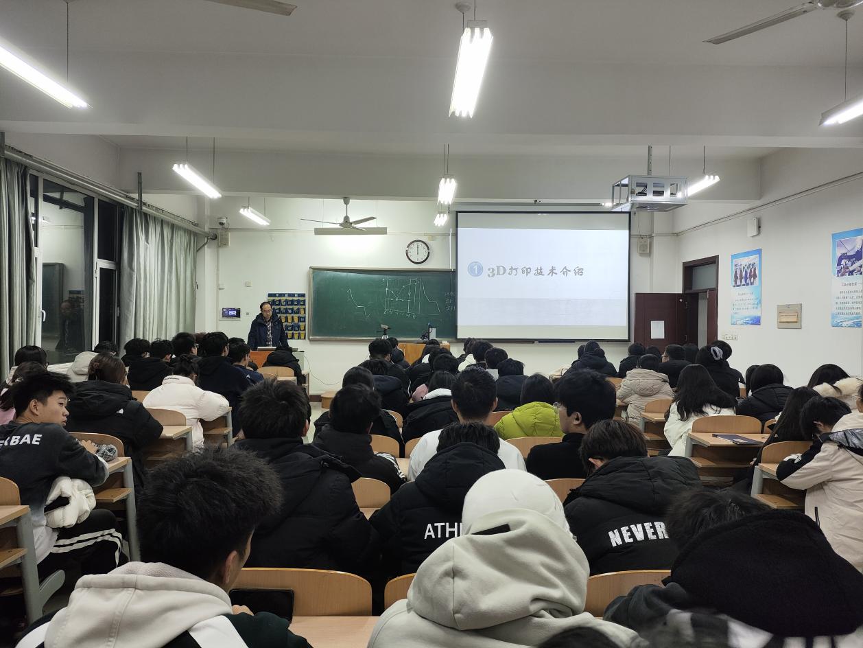 12月12日,欧冠官网在九教607教室举办3D打印技术讲座。讲座由学院教师王乾主讲,23级和24级学生参与。